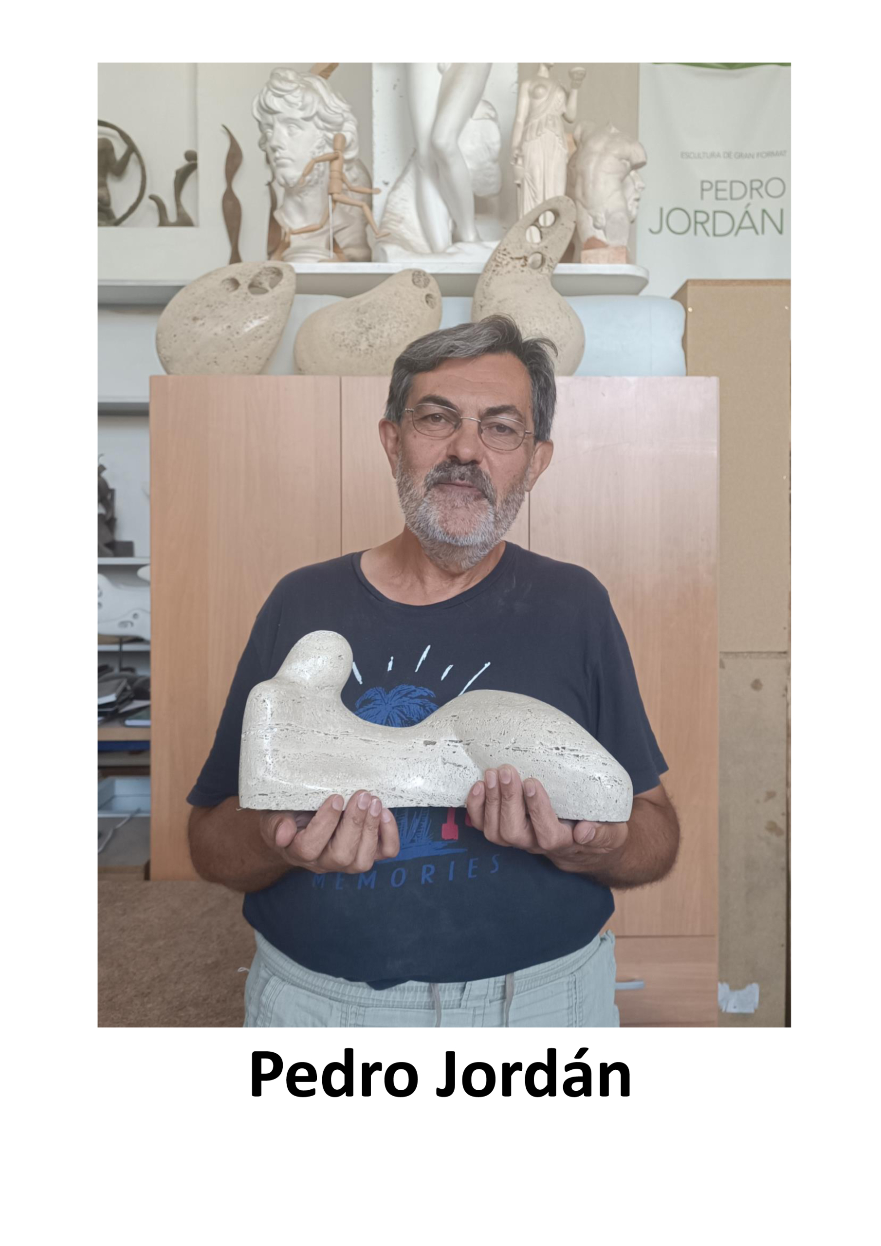 Pedro Jordán – «Figura reclinada III»- Escultura en mármol travertino. Certificado de autenticidad.