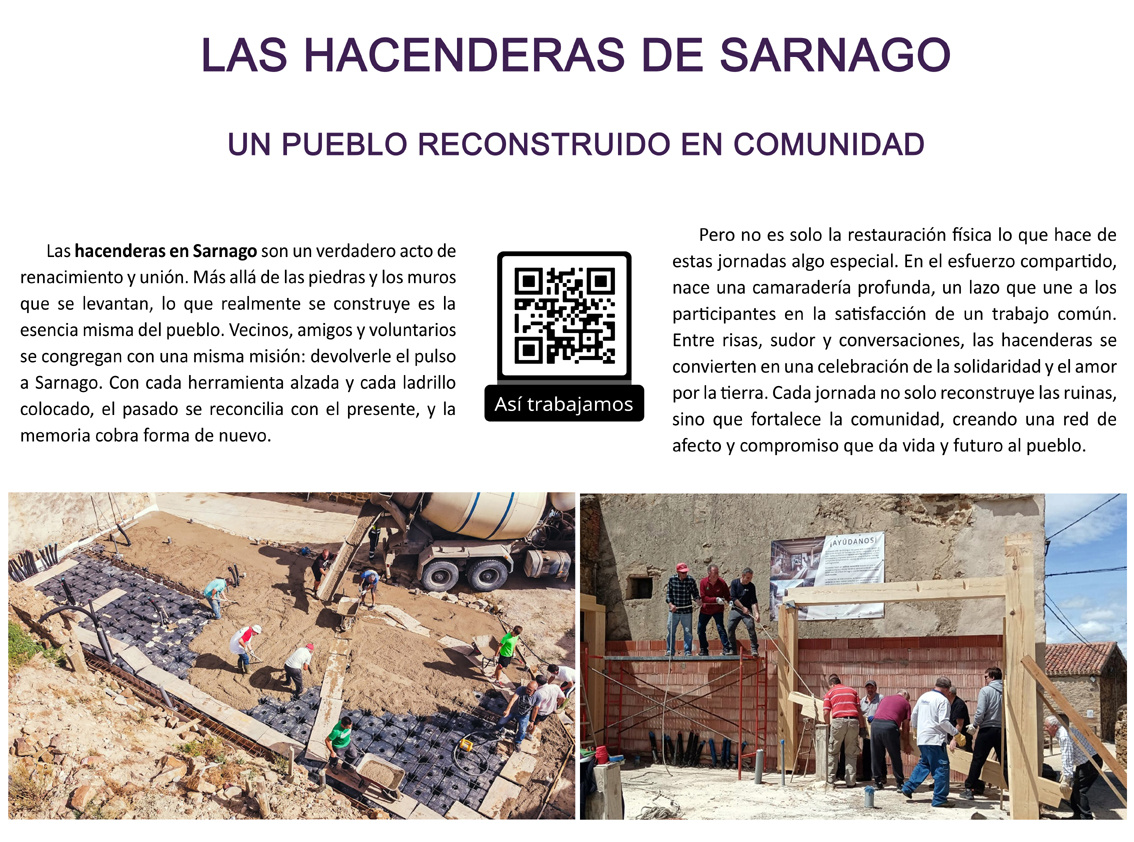 Durante estos días, pudimos compartir nuestra visión y avances con cientos de personas interesadas en el renacimiento de Sarnago. Hablamos de nuestra iniciativa de coliving, el museo en construcción, la biblioteca en el lavadero, la conservación de nuestras tradiciones como la fiesta de las Móndidas, y por supuesto, nuestro proyecto más inmediato: el crowdfunding en marcha para hacer realidad El Refugio de Sarnago.