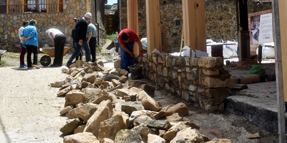 Uno de los objetivos principales de la jornada fue la construcción de muros de piedra, utilizando piedras locales para mantener la autenticidad y la sostenibilidad del proyecto. Bajo la guía de expertos en albañilería tradicional, los voluntarios trabajaron incansablemente, piedra tras piedra, construyendo muros que servirán como símbolo de la resistencia y la perseverancia de Sarnago.