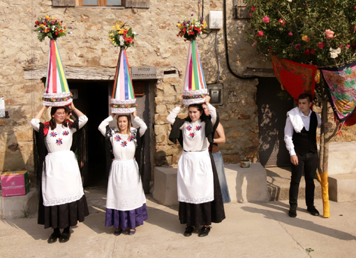 Las vestimentas de las mozas son muy parecidas en los diferentes pueblos (alguna con más boato y más adornos y otras más sencillas). Pero lo que de verdad distingue a unas de otras es el cestaño que portan en las cabezas, es ahí donde cada una conserva su idiosincrasia. Hay una cosa común a todas ellas, tienen que portar pan azafranado (en modo de hogaza, recubriendo los arbujuelos u otra apariencia).