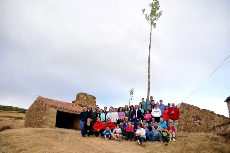 Una vez terminada la sobremesa, nos dirigimos a cortar la “rama” de arce que nos sirvió de Ramo para la fiesta del domingo. Mientras un grupo se quedó en la plaza “vistiendo” el Ramo, otro se dirigió a cortar el Mayo que se colocó, como es costumbre, en “la era empedrada” enfrente de el lavadero y la fuente.