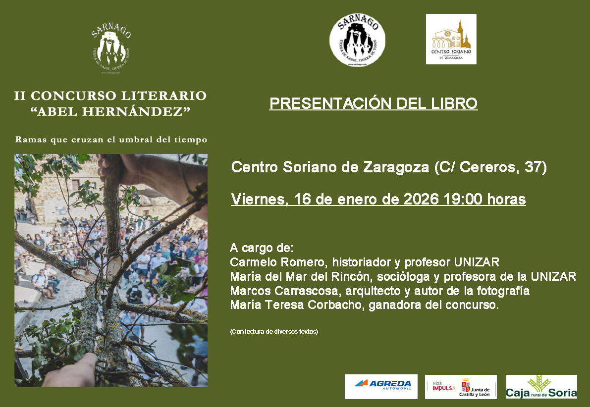 Zaragoza 16-01-2026 A pesar de la lluvia, muchas personas quisieron acompañarnos en la presentación del libro del II Concurso Literario “Abel Hernández”, celebrada en el Centro Soriano de Zaragoza, y compartir un rato agradable en torno a la literatura, la memoria y el territorio. El acto sirvió para conversar sobre la singularidad del certamen, un […]